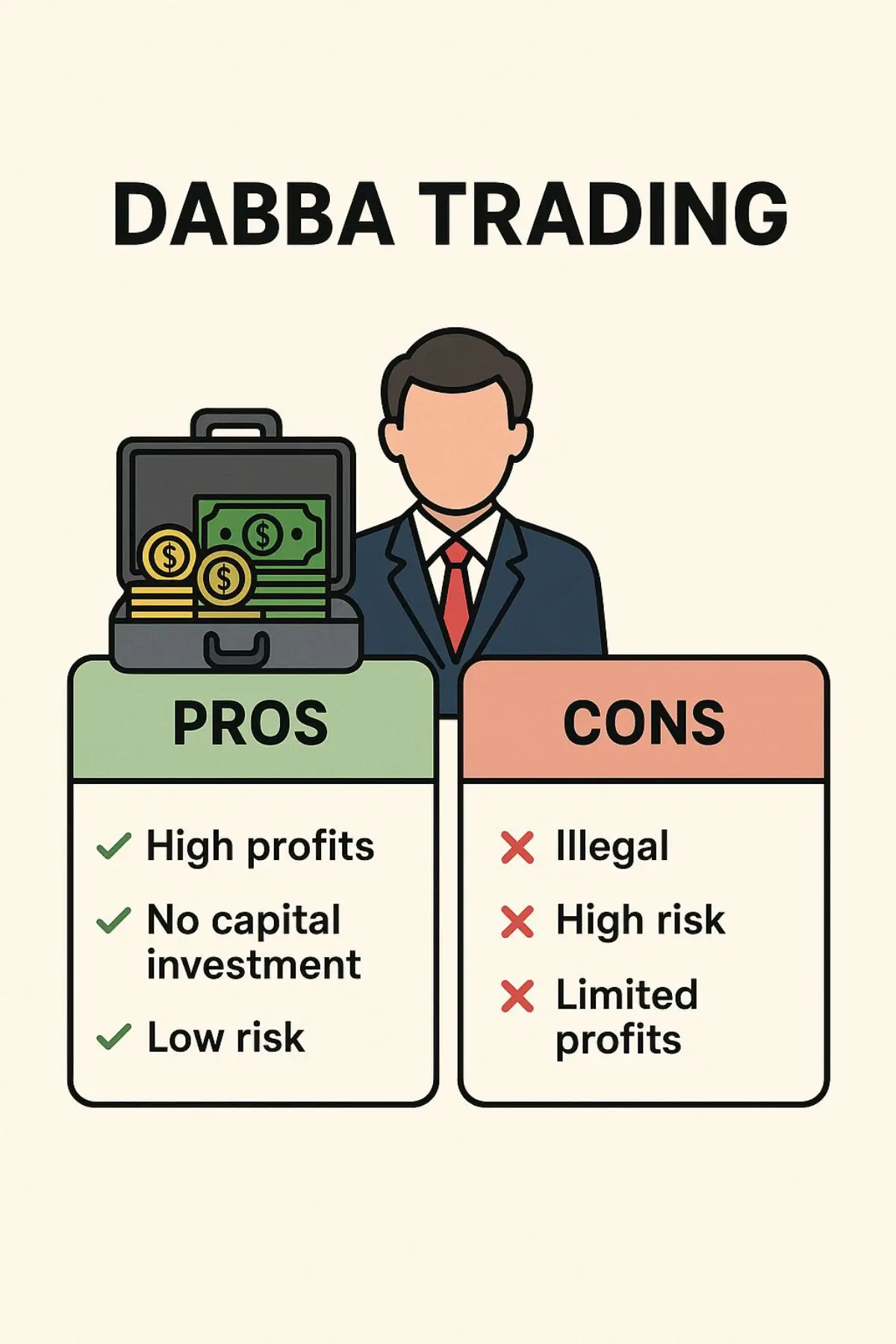 1. Dabba Trading in India is illegal: Since the trading system is not registered under any formal institution, it comes with certain legal consequences, such as fines and is prone to criminal allegations against the traders.